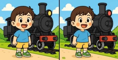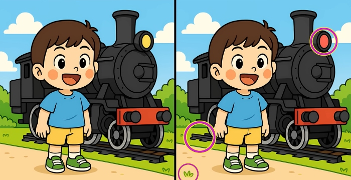 Sind Sie also bereit für die nächste Herausforderung? Schauen Sie sich die beiden Bilder des Jungen, der neben dem Dampfzug steht, genau an. Auf den ersten Blick mögen sie identisch aussehen, aber es gibt 3 kleine Unterschiede. Glaubst du, dass du sie alle in 29 Sekunden finden kannst? Probiere es aus und teste deine Sehschärfe!