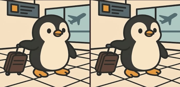 Sind Sie also bereit für die nächste Herausforderung? Schauen Sie sich zwei Bilder von einem niedlichen Pinguin an, der am Flughafen Gepäck trägt. Auf den ersten Blick sehen sie identisch aus, aber es gibt 3 kleine Unterschiede, die sich auf ihnen verstecken. Glaubst du, dass du sie alle in 61 Sekunden finden kannst? Probiere es aus und teste deine Sehschärfe!