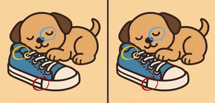 Sind Sie also bereit für die nächste Herausforderung? Schauen Sie sich die beiden Bilder eines Welpen, der auf einem Schuh schläft, genau an. Auf den ersten Blick mögen sie gleich aussehen, aber es gibt 3 kleine Unterschiede. Glaubst du, dass du sie alle in 51 Sekunden finden kannst? Probiere es aus und teste deine Sehschärfe!