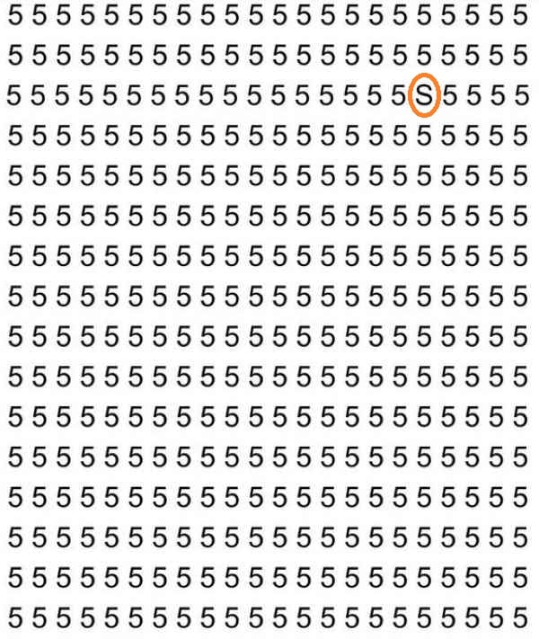In der folgenden optischen Täuschung müssen Sie den Buchstaben S unter einer großen Anzahl von Ziffern 5 finden, schreibt jagranjosh.