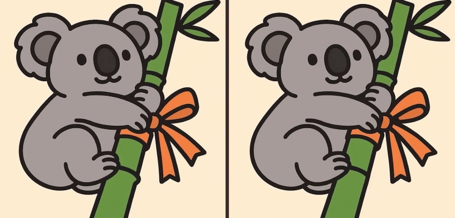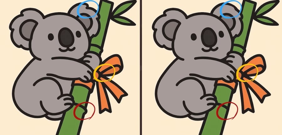 Sind Sie also bereit für die nächste Herausforderung? Schauen Sie sich die beiden Bilder eines Koalas, der sich an einen Bambus schmiegt, genau an. Auf den ersten Blick mögen sie gleich aussehen, aber es gibt 3 kleine Unterschiede. Glaubst du, dass du sie alle in 33 Sekunden finden kannst? Probiere es aus und teste deine Sehschärfe!