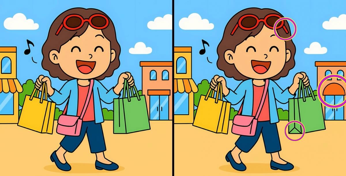 Sind Sie also bereit für die nächste Herausforderung? Schauen Sie sich die beiden Bilder des Mädchens mit den Einkaufstüten genau an. Auf den ersten Blick mögen sie identisch aussehen, aber es gibt 3 kleine Unterschiede. Glaubst du, dass du sie alle in 71 Sekunden finden kannst? Probiere es aus und teste deine Sehschärfe!