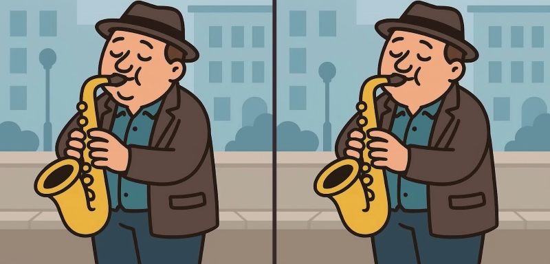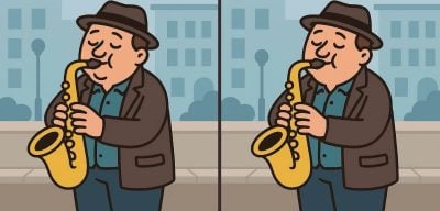 Sind Sie also bereit für die nächste Herausforderung? Schauen Sie sich zwei Bilder eines Saxophon spielenden Mannes genau an. Auf den ersten Blick mögen sie identisch aussehen, aber es gibt 3 kleine Unterschiede. Denkst du, du kannst sie alle in 31 Sekunden finden? Probiere es aus und teste deine Sehschärfe!