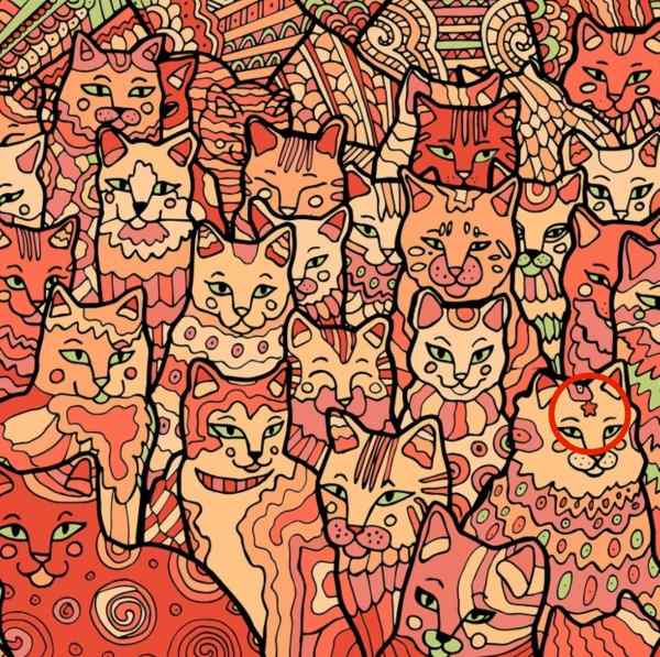 Auf den ersten Blick sieht es so aus, als bestünde das Bild nur aus Katzen. Aber wenn Sie genau hinsehen, werden Sie feststellen, dass der Stern überall in der Szene versteckt ist. Sind Sie also bereit, in dieses Bild einzutauchen und Ihr Gehirn herauszufordern, um den Stern innerhalb von 9 Sekunden zwischen den Katzen zu finden?