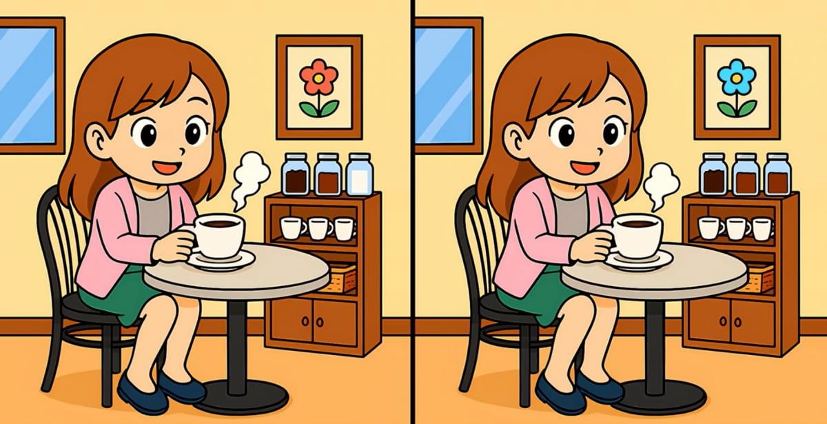Sind Sie also bereit für die nächste Aufgabe? Schauen Sie sich zwei Bilder von einem kaffeetrinkenden Mädchen genau an. Sie mögen auf den ersten Blick identisch aussehen, aber es gibt 3 kleine Unterschiede. Glaubst du, dass du sie alle in 19 Sekunden finden kannst? Probiere es aus und teste deine Sehschärfe!